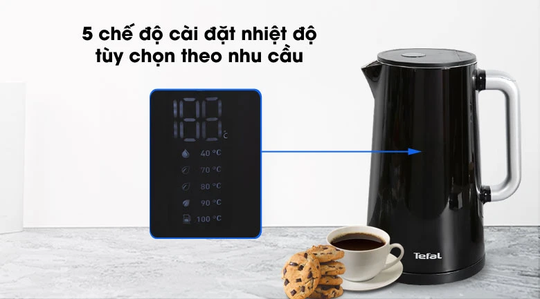Bình đun siêu tốc Tefal KO850810 sử dụng tiện lợi với 5 lựa chọn cài đặt nhiệt độ sôi