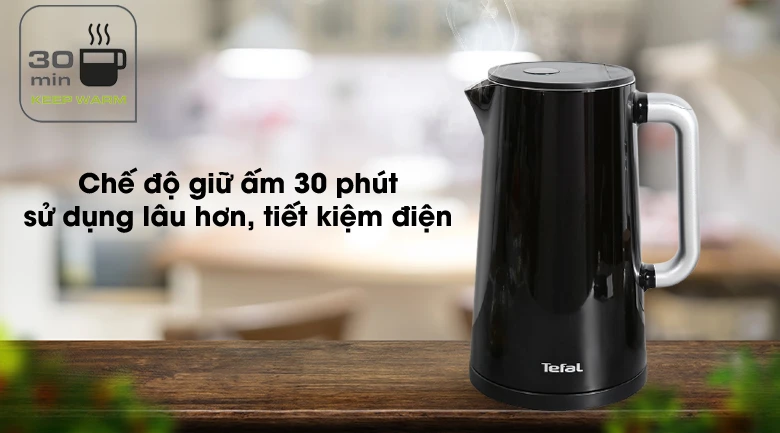 – Bình đun siêu tốc Tefal KO850810 được trang bị thêm chức năng giữ ấm trong vòng 30 phút, giúp duy trì nhiệt độ nước lâu hơn, đồng thời giúp tiết kiệm điện năng và thời gian đun sôi lại nước.