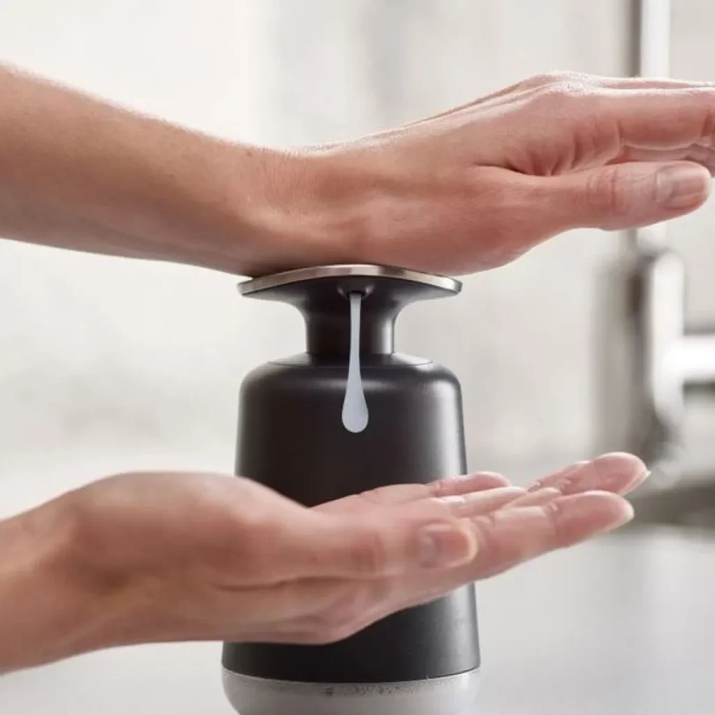 Bình đựng nước rửa tay Joseph Joseph Presto còn được trang bị một hệ thống thông minh để giữ nắp luôn sạch sẽ và hygienic. Nắp được thiết kế chống nhỏ giọt, giúp ngăn chặn sự tràn lan của nước và duy trì sự sạch sẽ cho bề mặt bình.