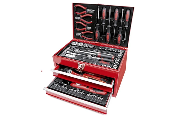 - Bộ dụng cụ này chứa đựng đủ loại công cụ cơ bản và phụ kiện cơ khí cần thiết để thực hiện nhiều công việc khác nhau. Từ đầu vít, cờ lê, búa, thước đo, đến các loại kìm và phụ kiện đa dạng khác.