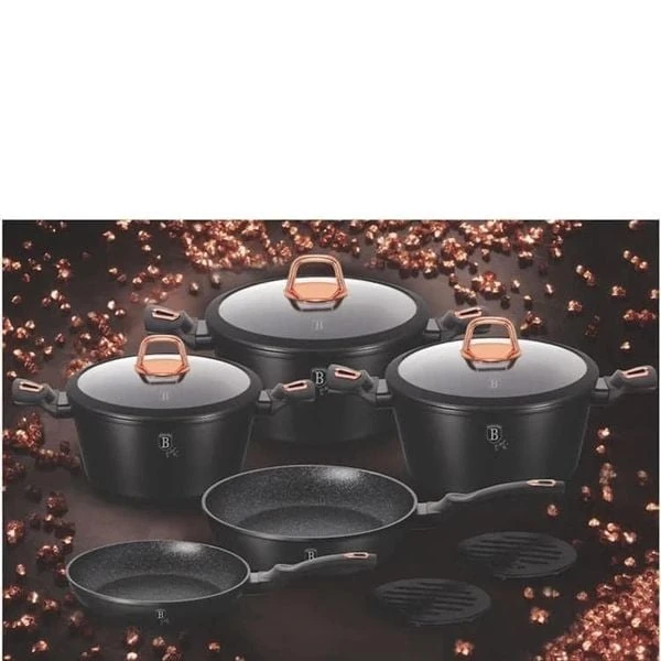 Bộ nồi 10 món Berlinger Haus BH/1645N màu đen vàng hồng bao gồm:
