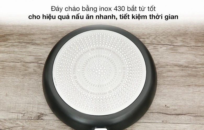 - Đáy chảo bằng inox 430 bắt từ tốt, thực phẩm chín nhanh, tiết kiệm thời gian.