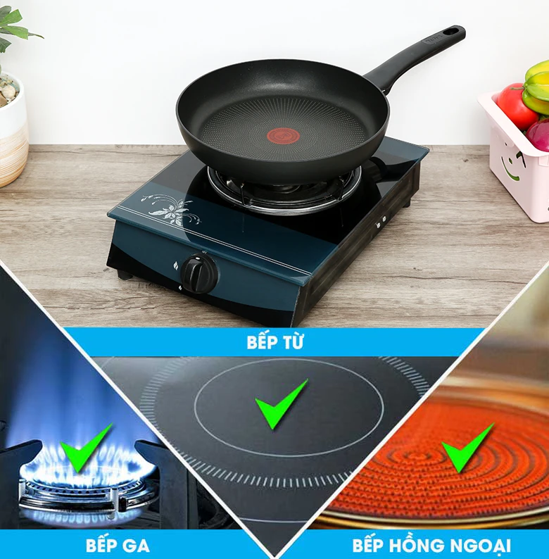 - Dùng được cho bếp từ, bếp ga, bếp hồng ngoại.