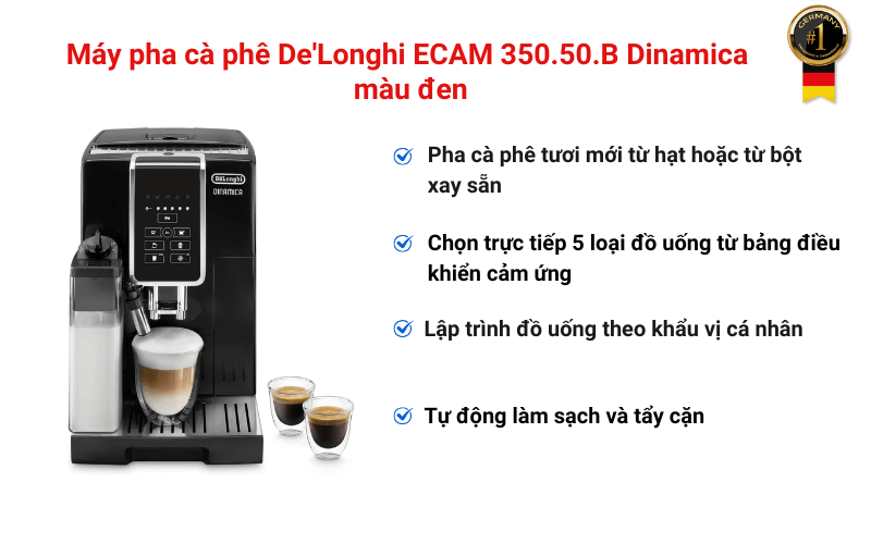 Máy pha cà phê DeLonghi ECAM 350.50.B Dinamica màu đen Pha chế đồ uống một chạm dễ dàng