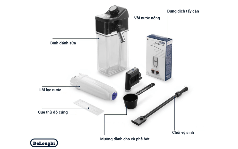 Máy pha cà phê DeLonghi ECAM 350.50.B Dinamica màu đen Phụ kiện đi kèm