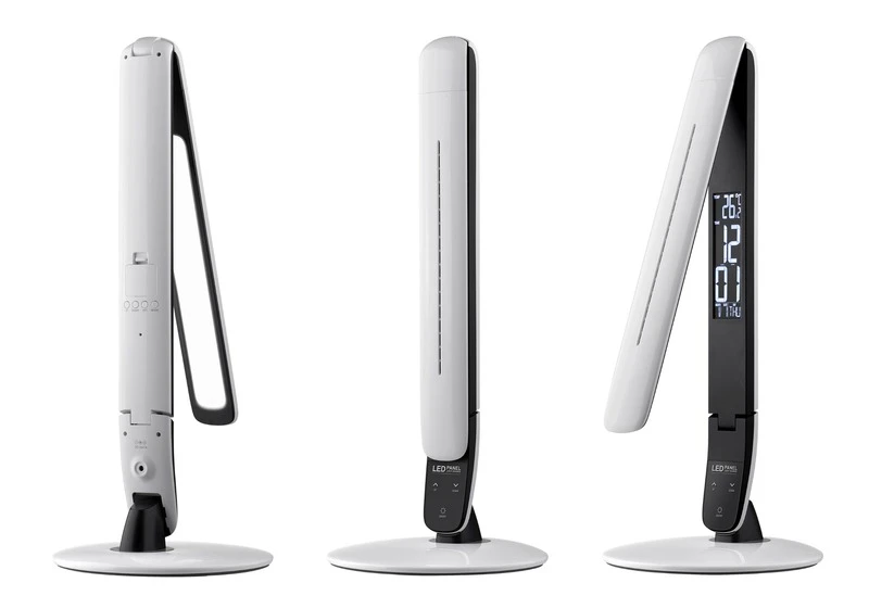 – Đèn bàn với đồng hồ báo thức, lịch, thời gian và hiển thị nhiệt độ với 3 mức độ màu đèn (vàng ấm, trắng, trung hoà) với 5 mức độ sáng phù hợp cho Làm việc, Học tập, Đọc sách và Thư giãn.