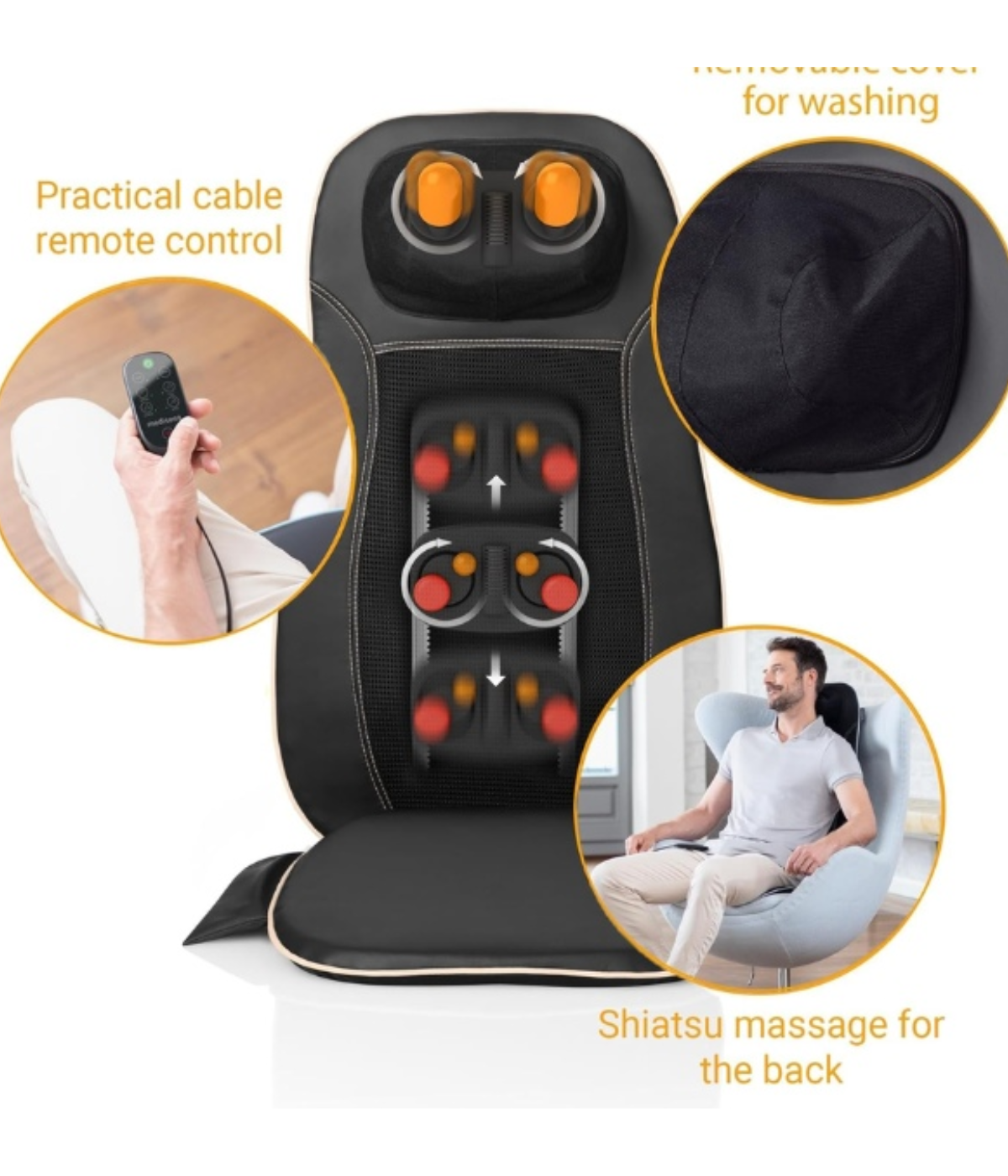 Với sự kết hợp độc đáo của shiatsu chuyên sâu và massage rung và nhiệt độ nhẹ, lớp phủ ghế massage MCN PRO của Medisana cho phép một ứng dụng hiệu quả và thư giãn. Điều khiển từ xa có dây thực tế đảm bảo dễ dàng xử lý và dễ sử dụng cao.
