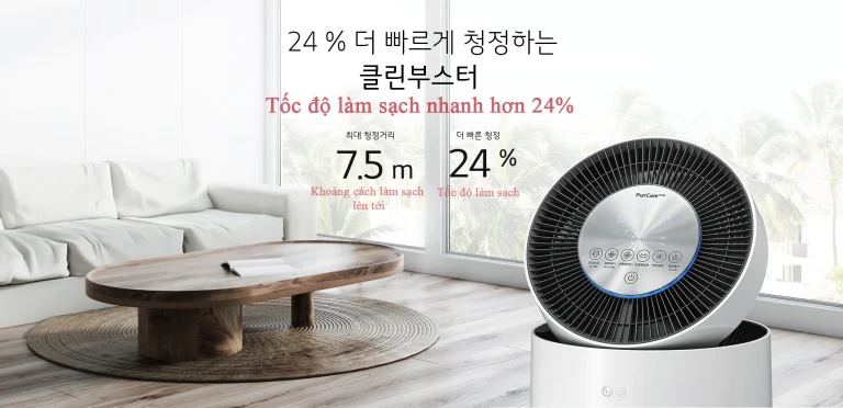 Máy lọc không khí 2 tầng LG Puricare AS303DWFA [Trắng] Bản 2023 có động cơ hoạt động êm nhẹ, không gây tiếng ồn khó chịu cho môi trường xung quanh. Khi hoạt động máy có thể tự tiết kiệm điện năng cho gia đình bạn. Với bộ đẩy khí hiện đại có trong máy giúp nó có thể làm sạch hơn và nhanh hơn đến 24%. Điều này giúp việc đẩy không khí sạch đi xa hơn đến khoảng 7.5m, giúp phân bố không khí sạch rộng khắp phòng.