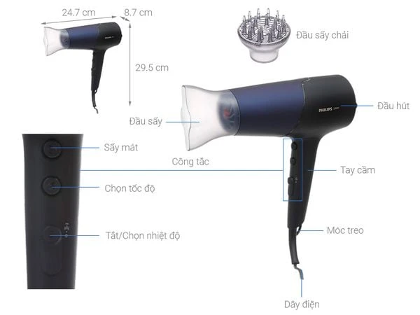 Thêm vào đó, thiết kế cấu trúc bên trong của máy cũng được cải tiến để tăng cường lưu lượng khí và phân tán nhiệt đều trên toàn bộ mái tóc. Nhờ vậy, tóc được sấy nhanh chóng mà không gây ra tổn thương cho chúng. Tính năng này giúp máy sấy tóc Philips 2300W trở thành một sự lựa chọn lý tưởng cho những người muốn tạo kiểu tóc thời trang mà vẫn đảm bảo sức khỏe cho tóc.