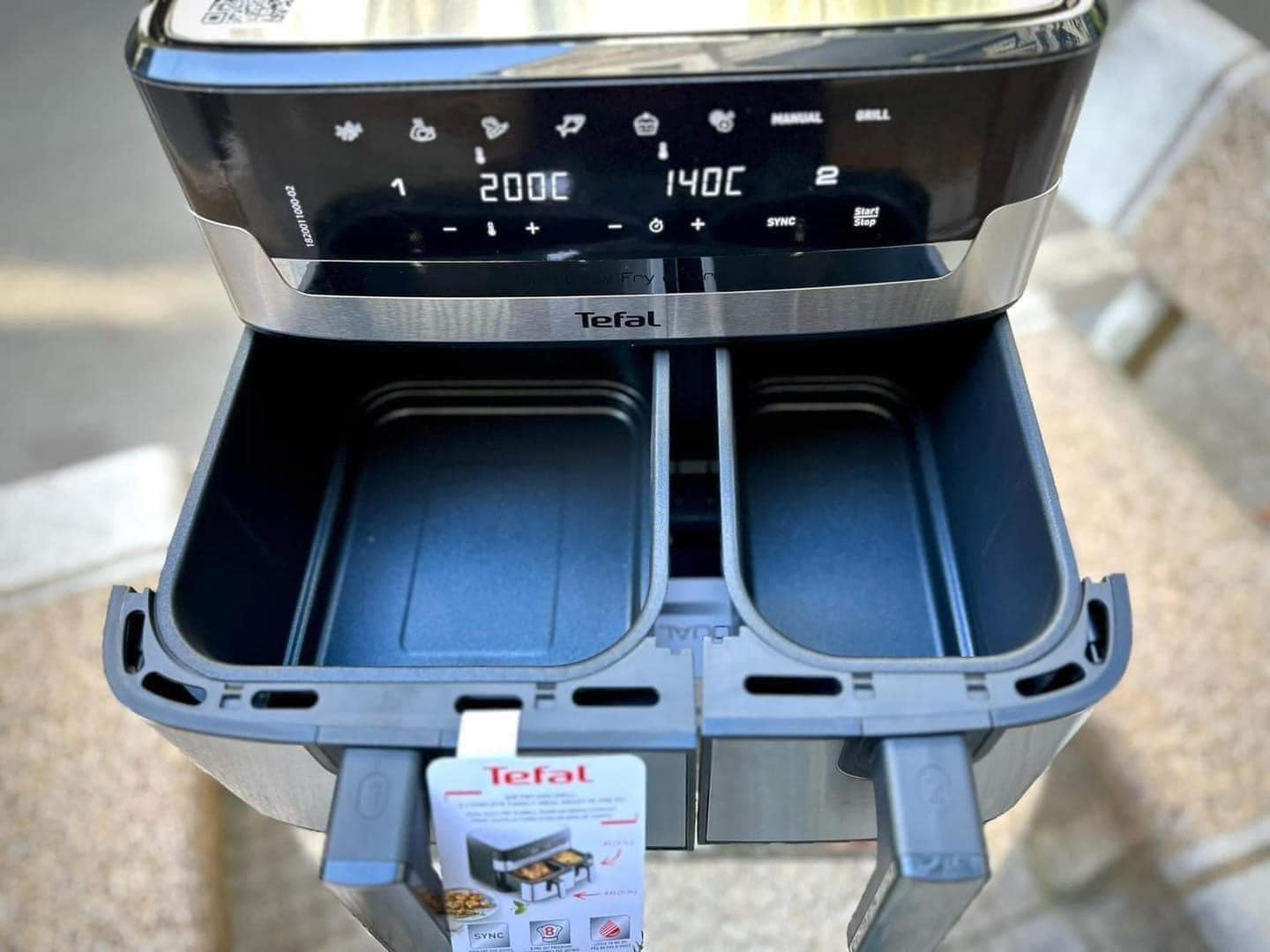 Nồi chiên không dầu điện tử Tefal Dual Easy Fry & Grill EY905D10 8.3L có hai ngăn có ngăn kéo XXL và ngăn kéo thông thường để nấu hai loại thực phẩm khác nhau cùng một lúc, để có một bữa ăn hoàn chỉnh sẵn sàng trong một lần.