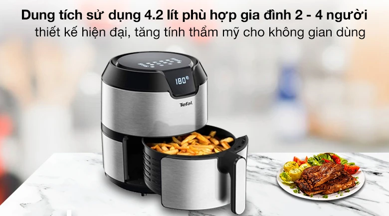 Nồi chiên không dầu Tefal EY401D15 4.2 lít thiết kế tinh tế, chiên nướng thực phẩm hạn chế dầu mỡ tốt cho sức khỏe, đa chức năng cài đặt sẵn, đáp ứng nhu cầu sử dụng 2 – 4 người.