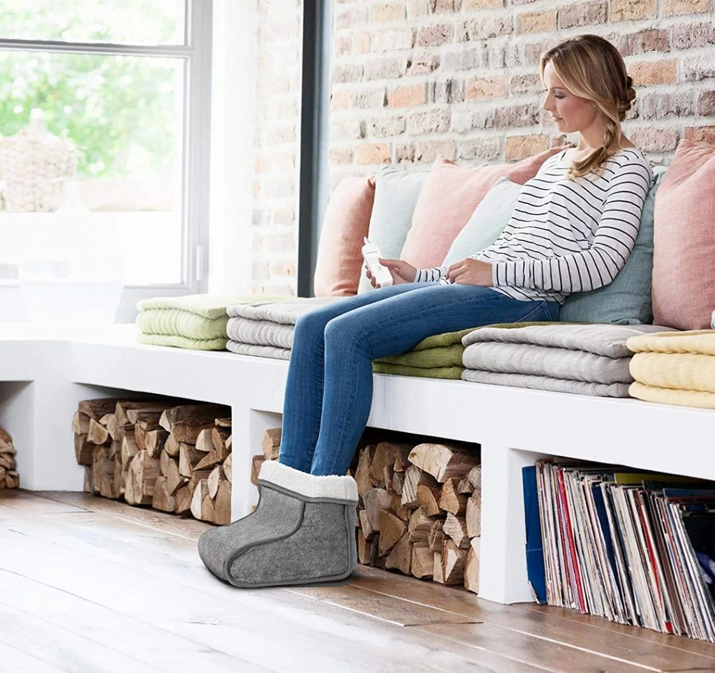 Ủ Chân Medisana 60259 FW 150 Fußwärmer – màu ghi, bề mặt dệt kim, lớp lót bên trong có thể tháo ra giặt